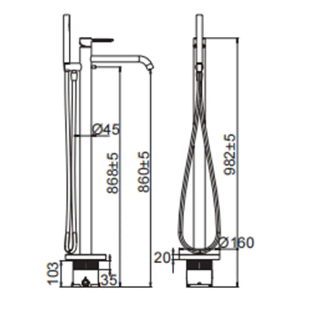 Vòi xả bồn nóng lạnh kèm sen tắm (loại gắn sàn)