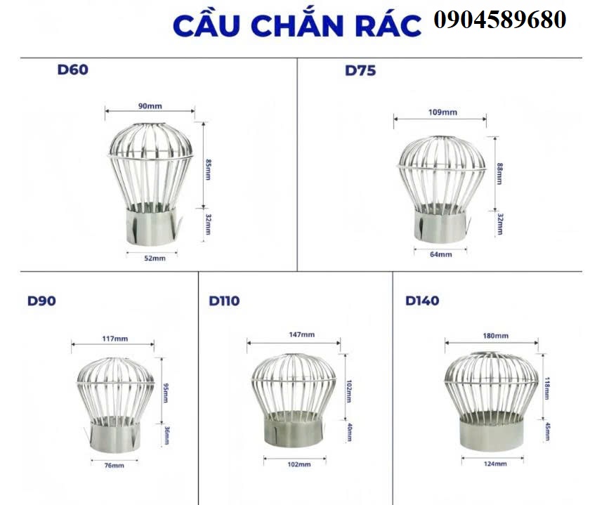 Cầu chắn rác nan sọc có vành inox 304 ống D60 giá 300.000