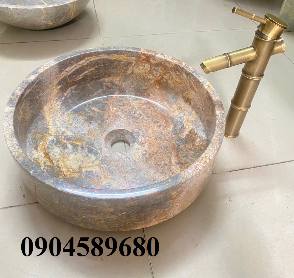 Chậu lavabo đá tự nhiên hình tròn HDTN52
