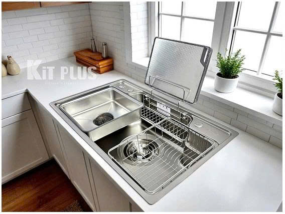 Full phụ kiện: Siphon Z slim, chậu rửa phụ, giá để phụ kiện Inox, thớt inox - nhựa, rổ inox