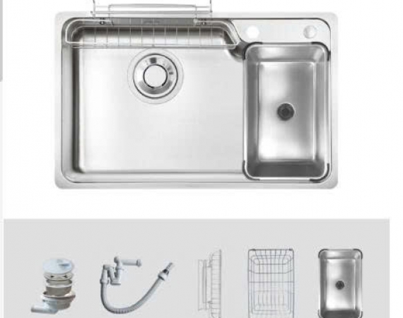 Lưu ý: Bộ sản phẩm bao gồm 01 chậu rửa + 01 bát rác + 01 Siphon + 02 giỏ inox + 01 chậu rửa nhỏ