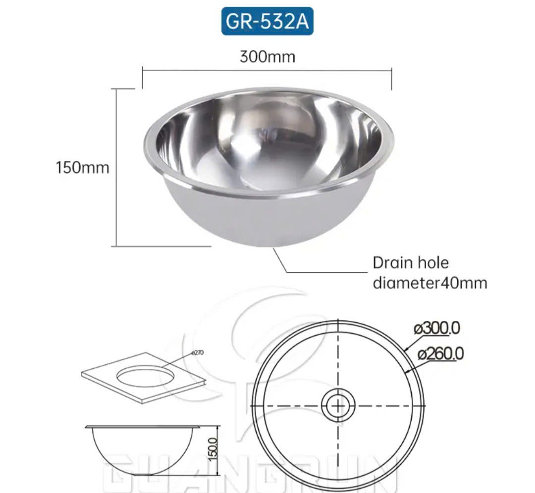 Chậu rửa mặt inox 304 âm bàn GR-532A