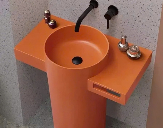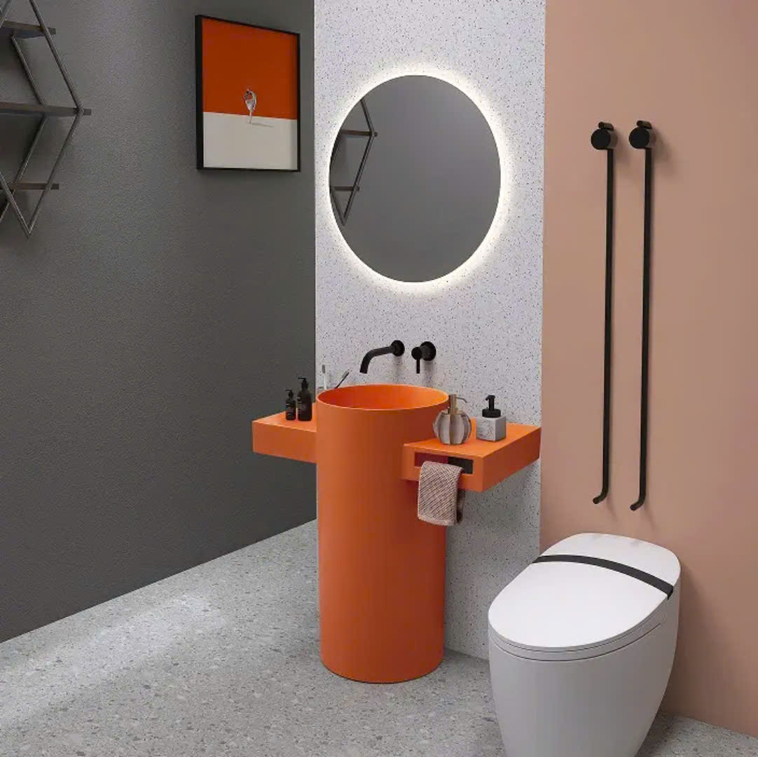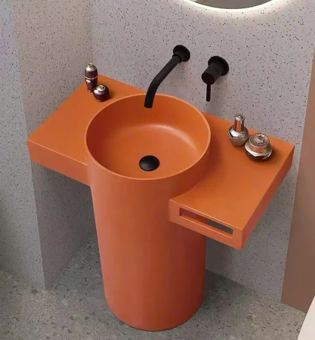 Chậu rửa mặt màu cam nghệ thuật chân đứng CB01NT