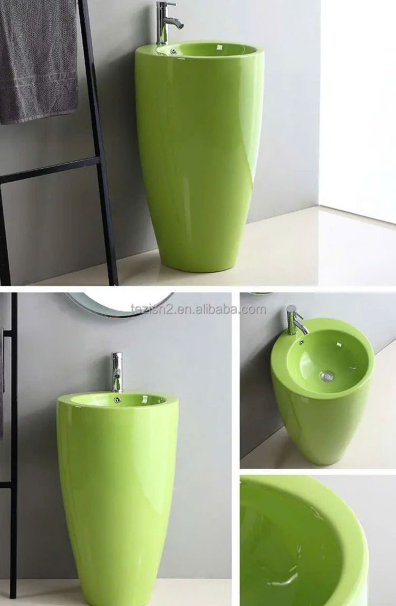 Chậu rửa mặt màu xanh nghệ thuật chân đứng CB02NT