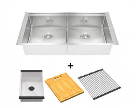 Bộ xả, siphon, thớt gỗ, lưới cuộn inox, chậu rửa nhỏ