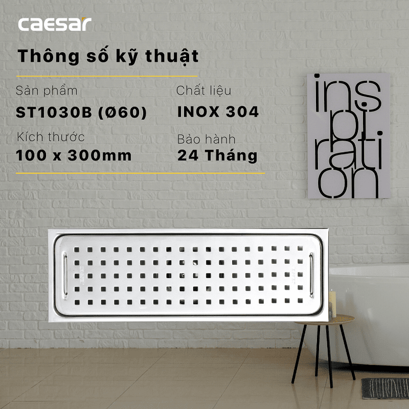 Thoát sàn ngăn mùi Caesar ST1030B chất liệu Inox 304 cao cấp không dễ bị han gỉ