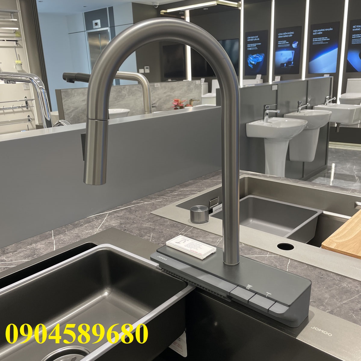 Vòi bếp phím đàn, dây rút ( mãu xám ) Jomoo 33171-733/HBS-Z