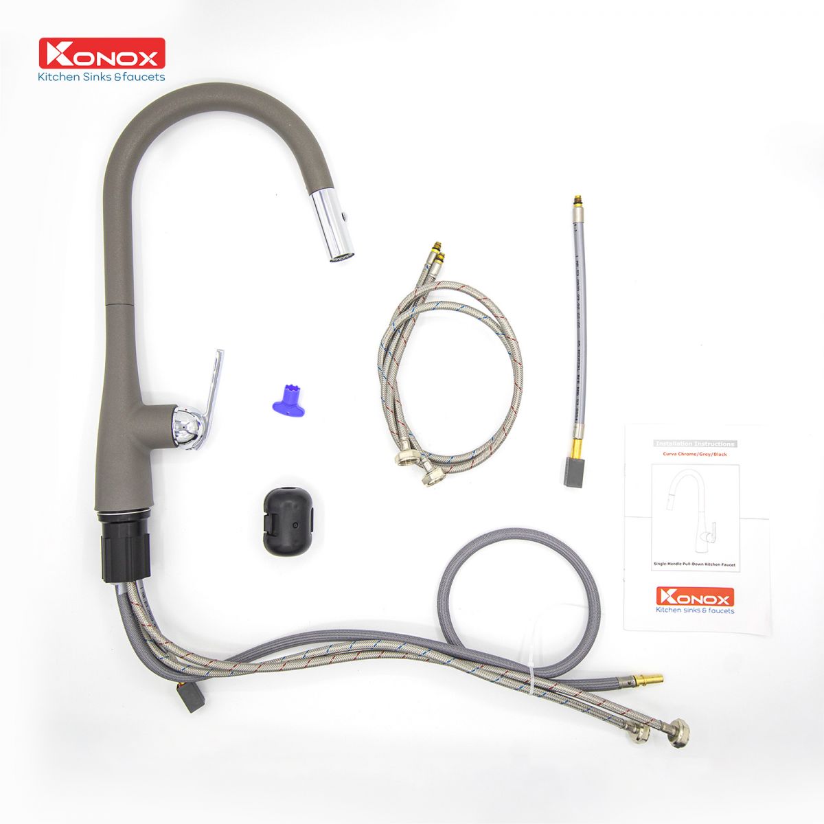 Vòi rửa bát dây rút KONOX Curva Grey