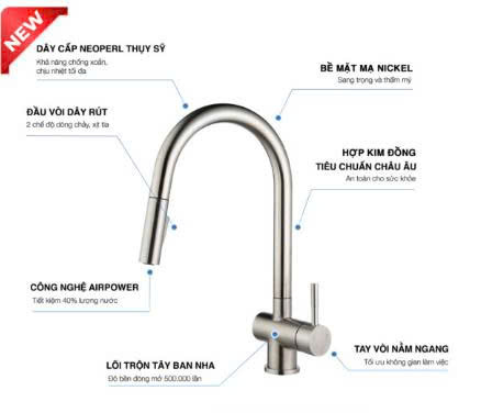 Kiểu dáng: Vòi dây rút thế hệ mới.