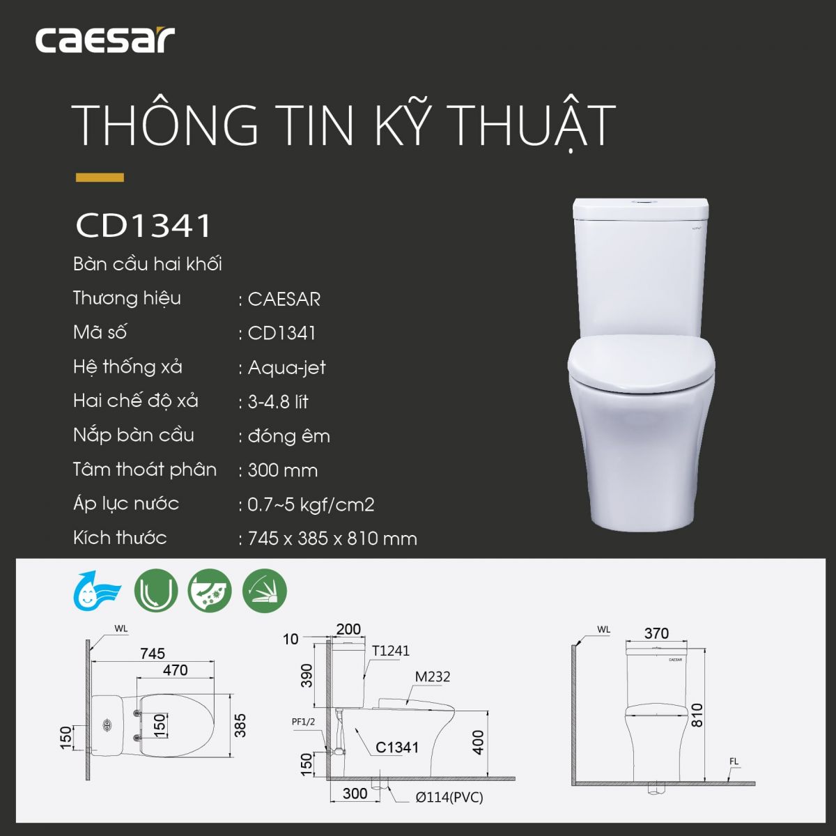 Thân bàn cầu: C1341-PW