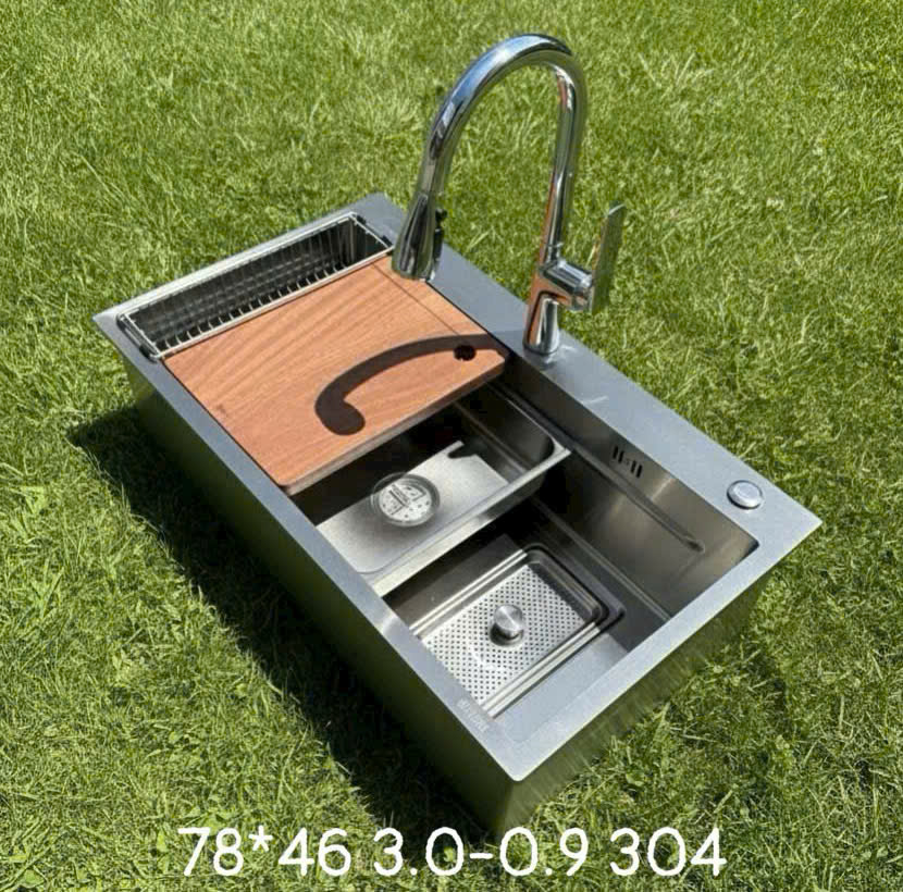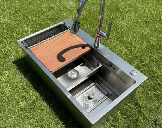 Thiết kế hiện đại với gờ hạ bậc – tích hợp phụ kiện thông minh: Siphon, chậu rửa nhỏ, thớt inox