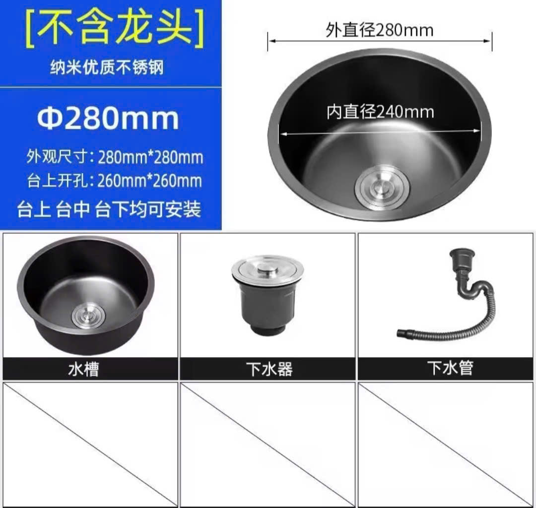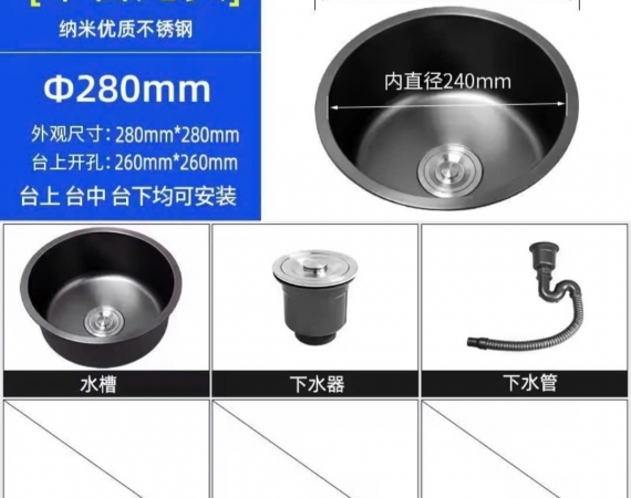 Chậu rửa bát bàn đảo màu đen HD280B kích thước 280 mm