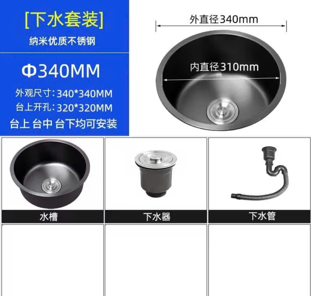 Chậu rửa bát bàn đảo màu đen HD340B kích thước 340 mm