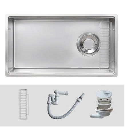Bộ sản phẩm bao gồm: 01 chậu rửa + 01 bát rác + 01 Siphon + 01 giỏ inox.