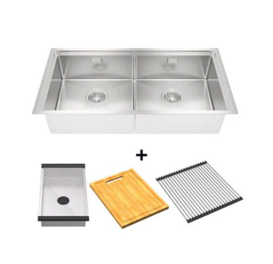 Bộ xả, siphon, thớt gỗ, lưới cuộn inox, chậu rửa nhỏ