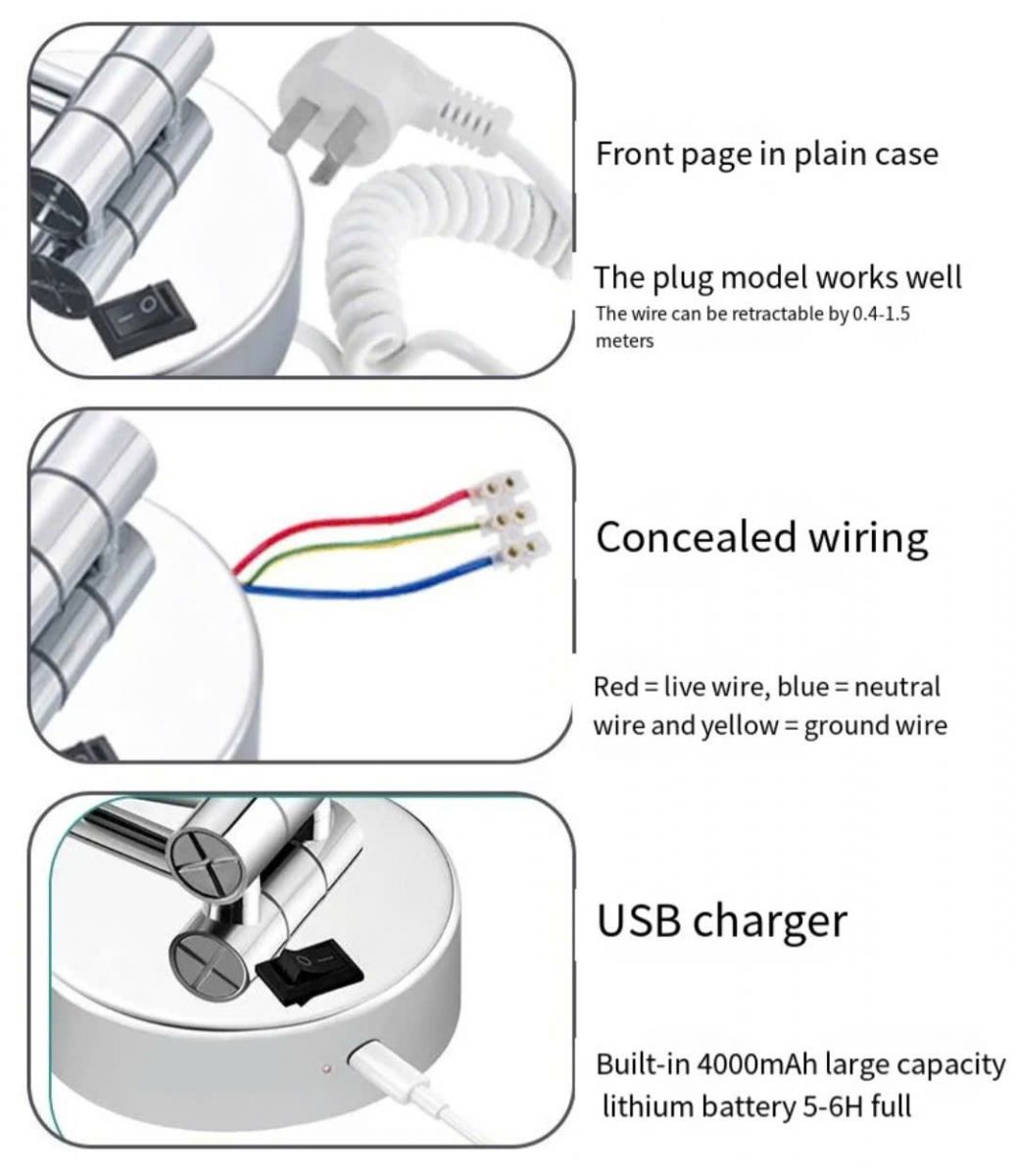 Gương trang điểm phóng đại màu đen có đèn Led HD1106 Loại treo tường, Kích thước phi 200mm 1 mặt soi bình thường 1 mặt soi phóng đại 3, 5, 7, 10 Chất liệu : Khung Inox 304, gương Led ánh sáng trắng Gương tráng bạc chống mốc chống ố Dùng Pin sạc hoặc dùng điện điều khiển cảm ứng Có 3 chế độ ánh sáng Lựa chọn các màu gương : vàng, đem, crom. inox mờ, vàng cổ Xuất xứ : Trung Quốc Bảo hành : 12 tháng đổi mới khi có lỗi từ nhà sản xuất Vận chuyển : miễn phí